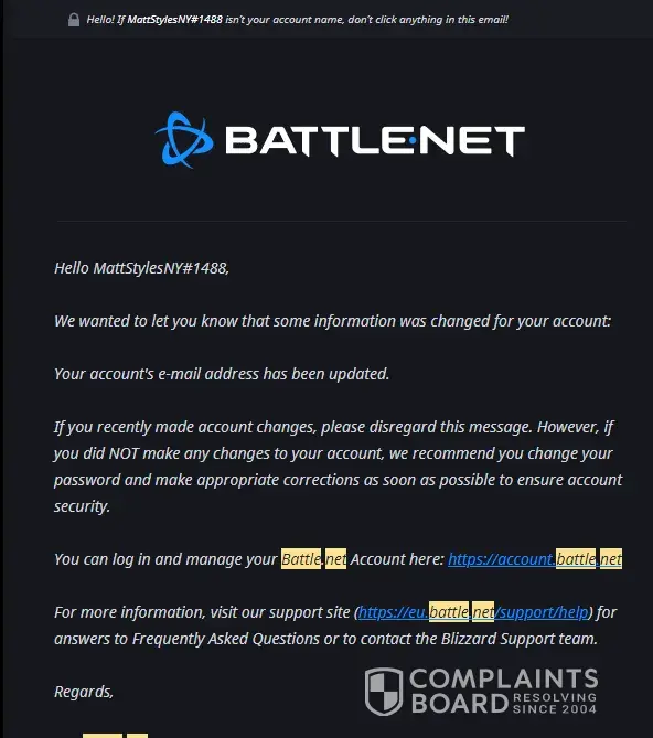 Hello, my Activision ID is DOTZBERG#3001824. I have been playing from Battle.net ID DOTZBERG#2811 for five years. I am writing to complain about my account being permanently banned on June 6th. I believe this was done in error, and I have screenshots to prove my innocence. On May 23rd, someone linked their XBL account wich is not mine and unknown to me, to my Activision account and attempted to change my email. I discovered this on May 26th and took steps to protect my account. I unlinked the XBL account and requested a password change. I even received an email from you indicating that suspicious activity had been detected on my account. Therefore, I believe the ban was triggered because I made changes to protect my account. I kindly request that you review my case and reconsider the ban on my account. I have been a loyal player for many years and have never engaged in any activities that violate your terms of service. I would appreciate the opportunity to continue playing and enjoying your games. Thank you for your attention to this matter.