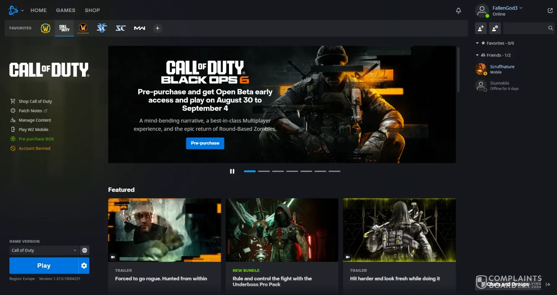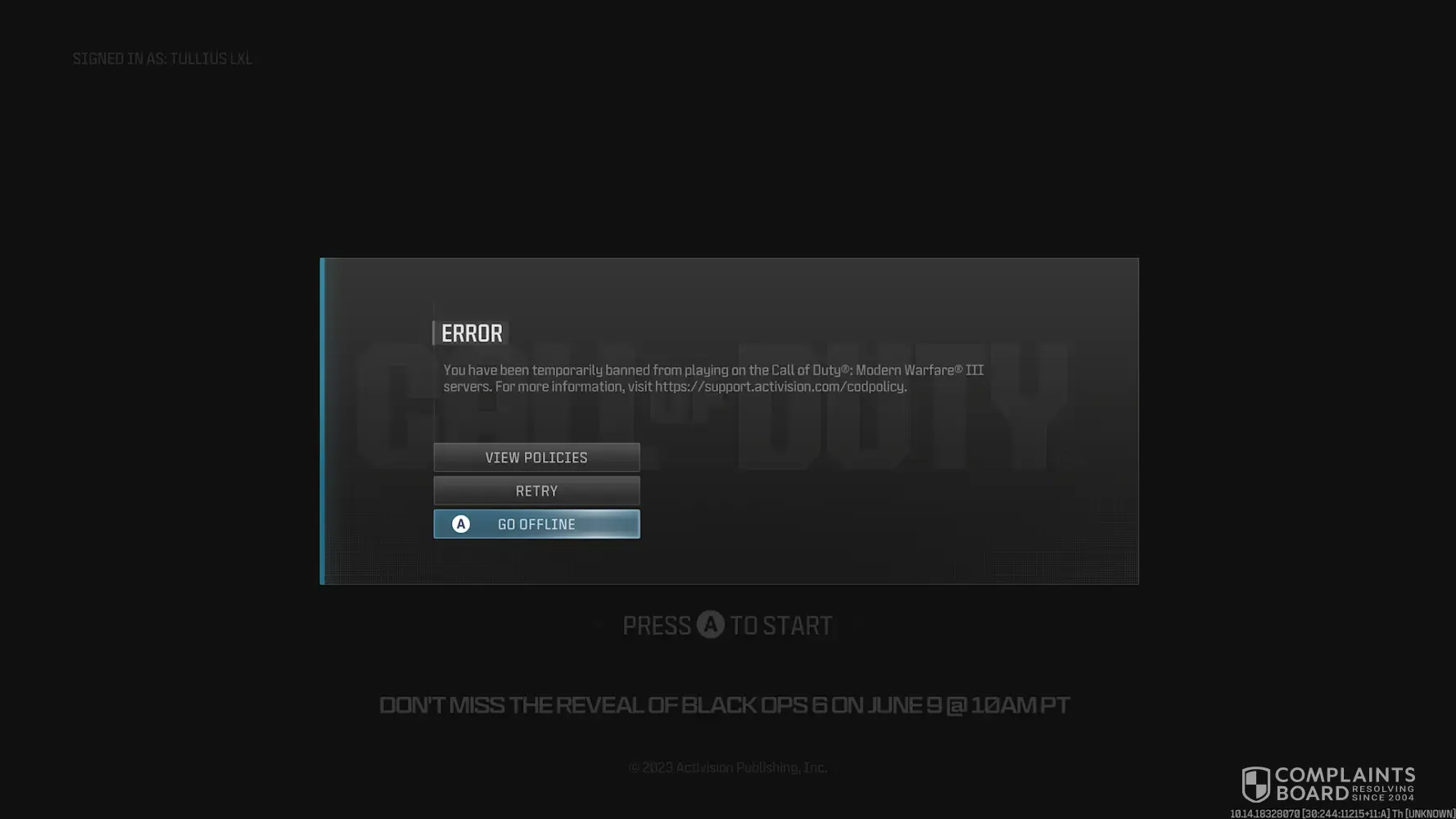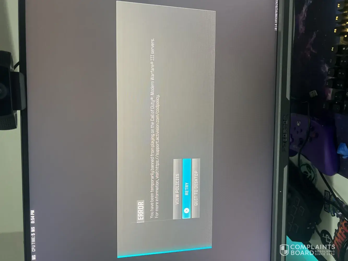 Read full complaint and 1 commentWrongful ban on call of duty