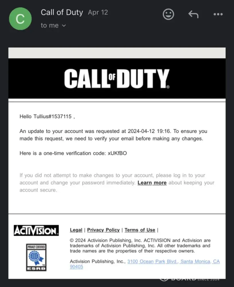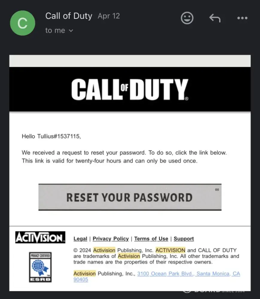 Activision Account Recovery Request ID: [protected]