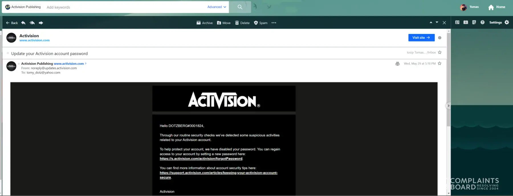 Activision account recovery case: [protected]