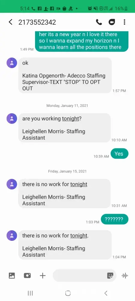 When I filed a complaint through Adecco's Ethics line, I was assured that this would be taken seriously, and they would investigate my claims thoroughly. Now, over two months later. Nothing has been investigated, beyond them responding to the State unemployment agency, and bold faced lied to them, about my hours. The response "Adecco investigated themselves, and found no wrong doing." Adecco claims that I have now been paid in full. So evidently they think I'm going to work for free... Not okay... Not happening!