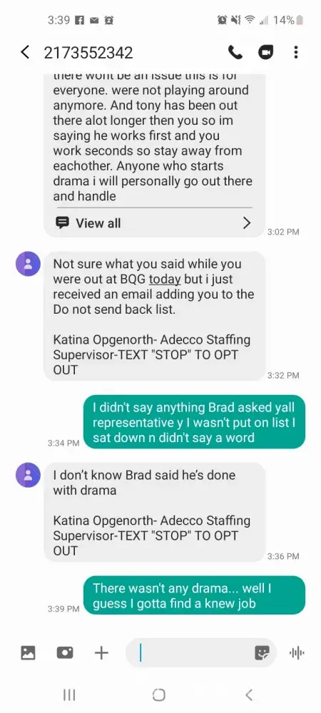 For the sake of clarity... I showed up on time, did my work well (exceeded the expected throughput rates of the staff on a daily basis) and had quite a fair amount of training in multiple departments. A good portion of the staff, both Adecco and Amazon liked having me around. I suppose if one person from Adecco who does your scheduling doesn't like you though, then they'll try to pull something out of George Orwell's "1984" and make you disappear.