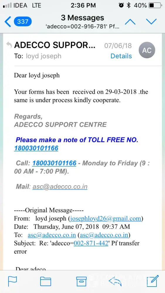 Adecco Group I am from india and my complaint ticket no. is 3025159