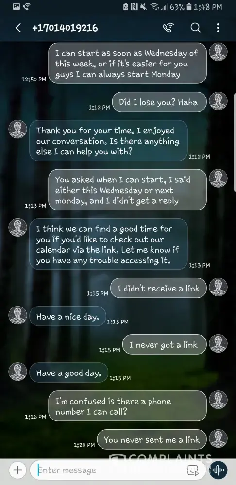 On October 15th, 2018 I reached out and called at 3:05pm - [protected]. Stephanie answered & we proceed to talk about when my next appointment was & when she went through her notes, she proceeded to tell me, that she contacted cst storage and told judy when my next appointment, was. She stated that she called me on October 4th at 10am & told me that my next appointment was October 4th at 10am. when i corrected her and told her that she never contacted me, and why did she contact me of the same time i was suppose to be at the appointment, the conversation then got touchy. She proceeded to raise her voice and tell me that she should have let me go for missing the first appointment, & that it wasn't her job to set up the appointments & that I should be more responsible & less careless about how I handle my priorities. I then informed her that i was not Judy from Cst, that I was Evan DShaun Conner & that i had all phone records that she never contacted me. She then told me that she was going to handle it one last time, and that i needed to make the appointment to keep my job. So i did so. my Appointment was that following Friday October 19th at 1pm. On October 19th at 11:23pm Stephanie reached out and contacted me asking if i had made my appointment at occumed, I informed her that she told me 1pm on the 19th and that it was 11:30 am on the 19th. I showed to the appointment while still working my 2nd job. i had my clientell with me. and due to traffic I was a few minutes late *1:09pm arrival time. I was cleared and ready to go back to work even after already being sent back to work.