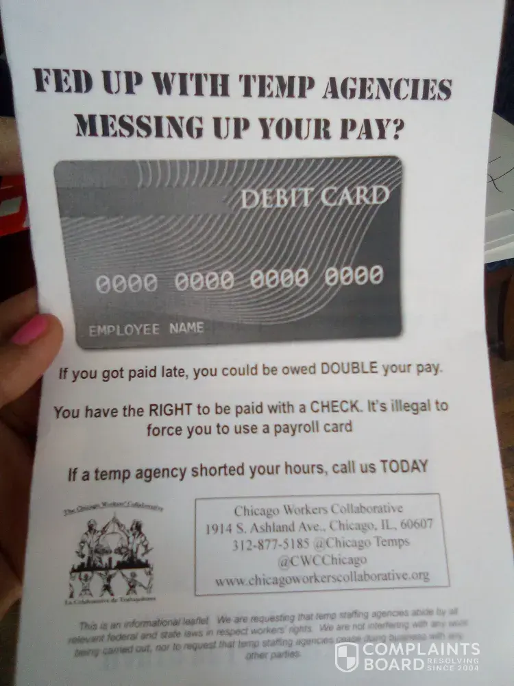 4) adecco illegally forced workers to receive payment by payroll cards instead of giving them the option of receiving payment by check.