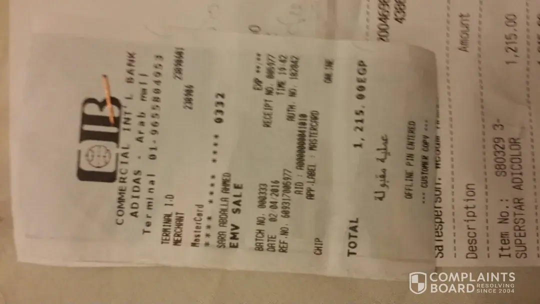 I would like to submit a complaint in regards to a purchase of the Adidas Cloudfoam sneakers on 19 March 2016.