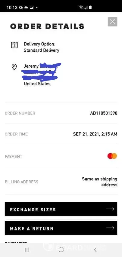 Recently placed two orders a day or so apart. (have order several times prior form adidas with no problems).