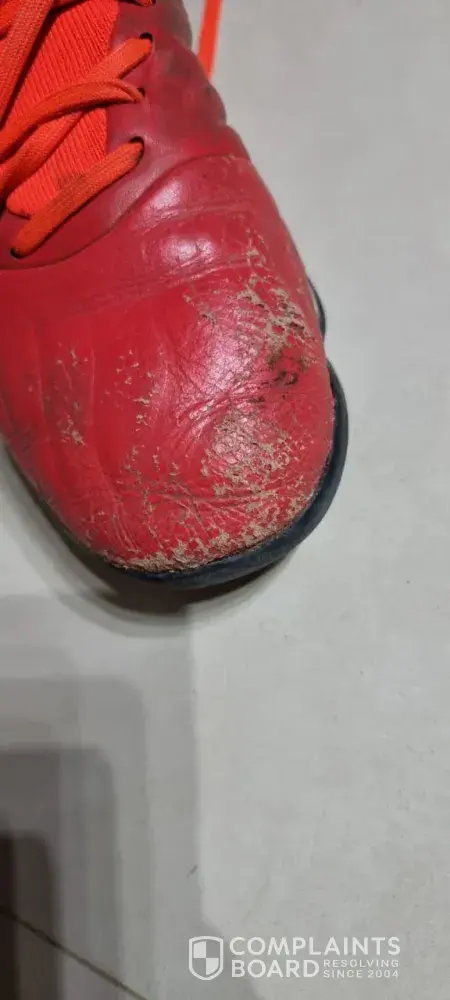 It was peeled for no reason as he wear it only in football training, we bought it 3 months ago, hoping to have a solution soon, because we went to the store for complaining and we didn't get any persuaded answer, we are in shock as we used to wear adidas in all our life style, since we sent it to the store my son didn't trained and in abad mood too and still waiting for your support;
