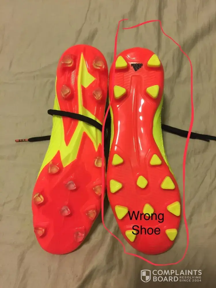 In June this year, my son brought a pair of football shoes in Tokyo Japan. The pairs of shoes was nicely packed, but they are not a pair.