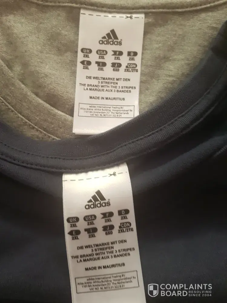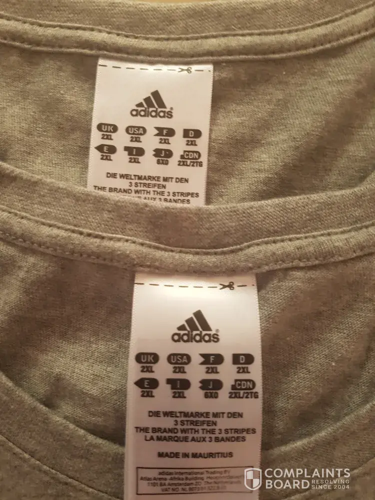 enquire about the same Adidas t-shirts. Both of them are 2XL but is not the same size. I receive the 2 small 2xl as a present, they bought it at Adidas outlet in centurion mall I and only wore it once. And the big 2xl I bought at sportsman warehouse in Klerksdorp at 12/03/2018 to compare the sizes.
