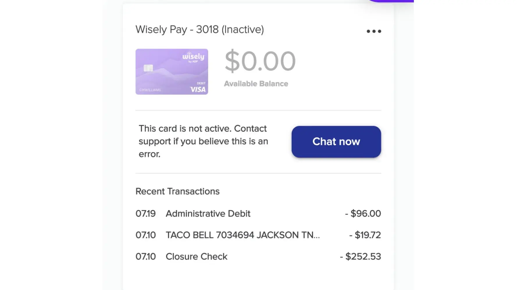 Their wisely pay card sucks if you have a dispute of a transaction... it takes them up to 90 days to complete your dispute according to their policy and they don’t notify you of any progress and when you have fraud in such a duplicate pay card they will not give you any information on it other than “it’s still being investigated “ is always their response no details whatsoever! I am not happy it’s my only money and when you live pay check to pay check it really puts more stress on you! I WOULD NOT RECOMMEND this card to anyone or any company for their employees !