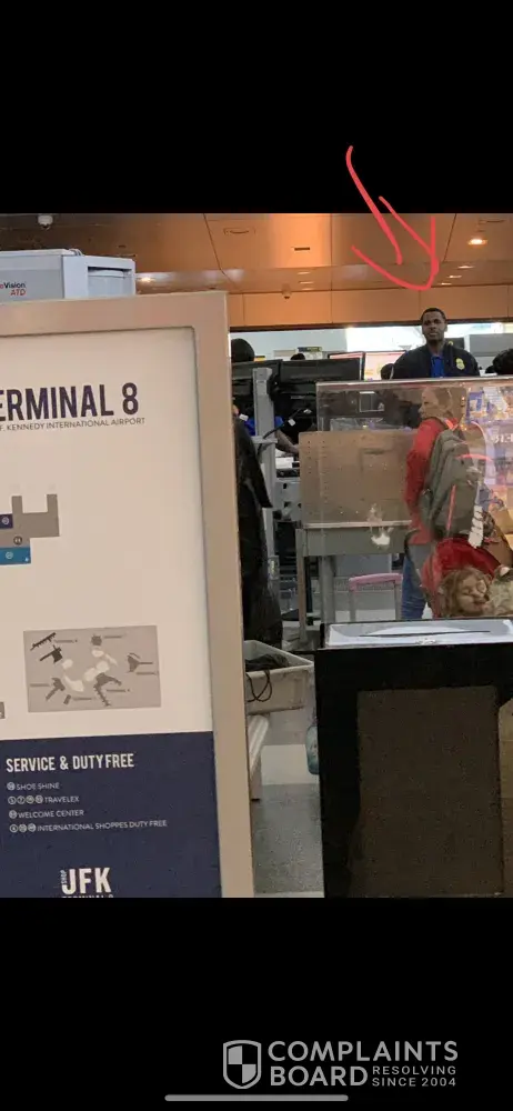 At about 1300 hours when I passed through the security checks, the black guy in the attached photo behaved very rude and grabbed my cock even though I did not carry any thing in my clothing. Please take enforcement action against him to prevent recurrence on sexual harassment.