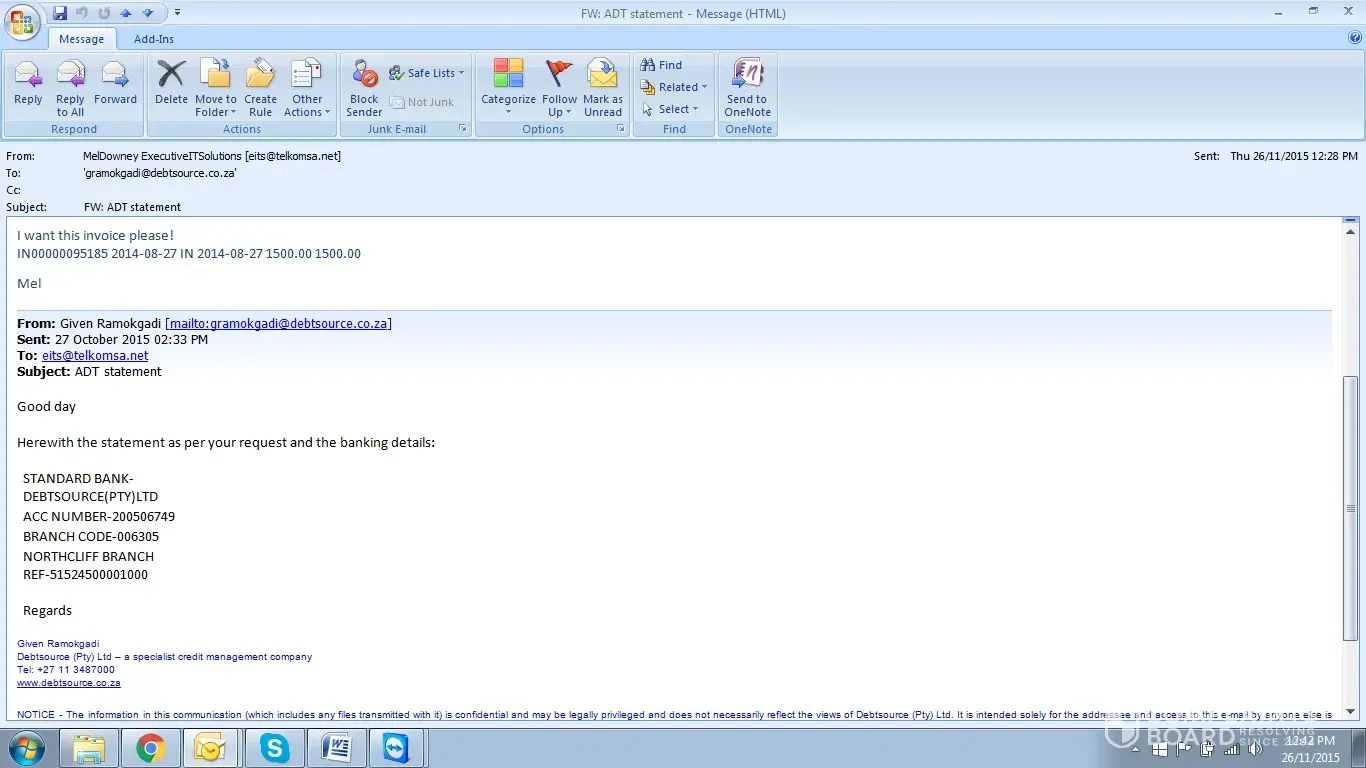 I have not been a client of ADT acc no;(EXE00001) for at least a year and a half. About 4 months ago i started getting SMS's saying that I have been handed over to a debt collecting company. I contacted the company regarding the collection and they could not give me any information or provide documentation why I owe the money as per ADT. I have requested via email, sms and phone calls to send me the relevant documentation so that we can resolve this matter. When I contact the debt collecting company they inform me that they have requested the documentation and as to date has not received any from ADT. I then tried to get the invoices directly from ADT but they could not provide me with the documentation as well and pass me back to the debt collecting company. The debt collecting company threatens me to black list me should i not pay! I informed them I can not pay should I have no documents and they can not proceed with legal action until this has been resolved.