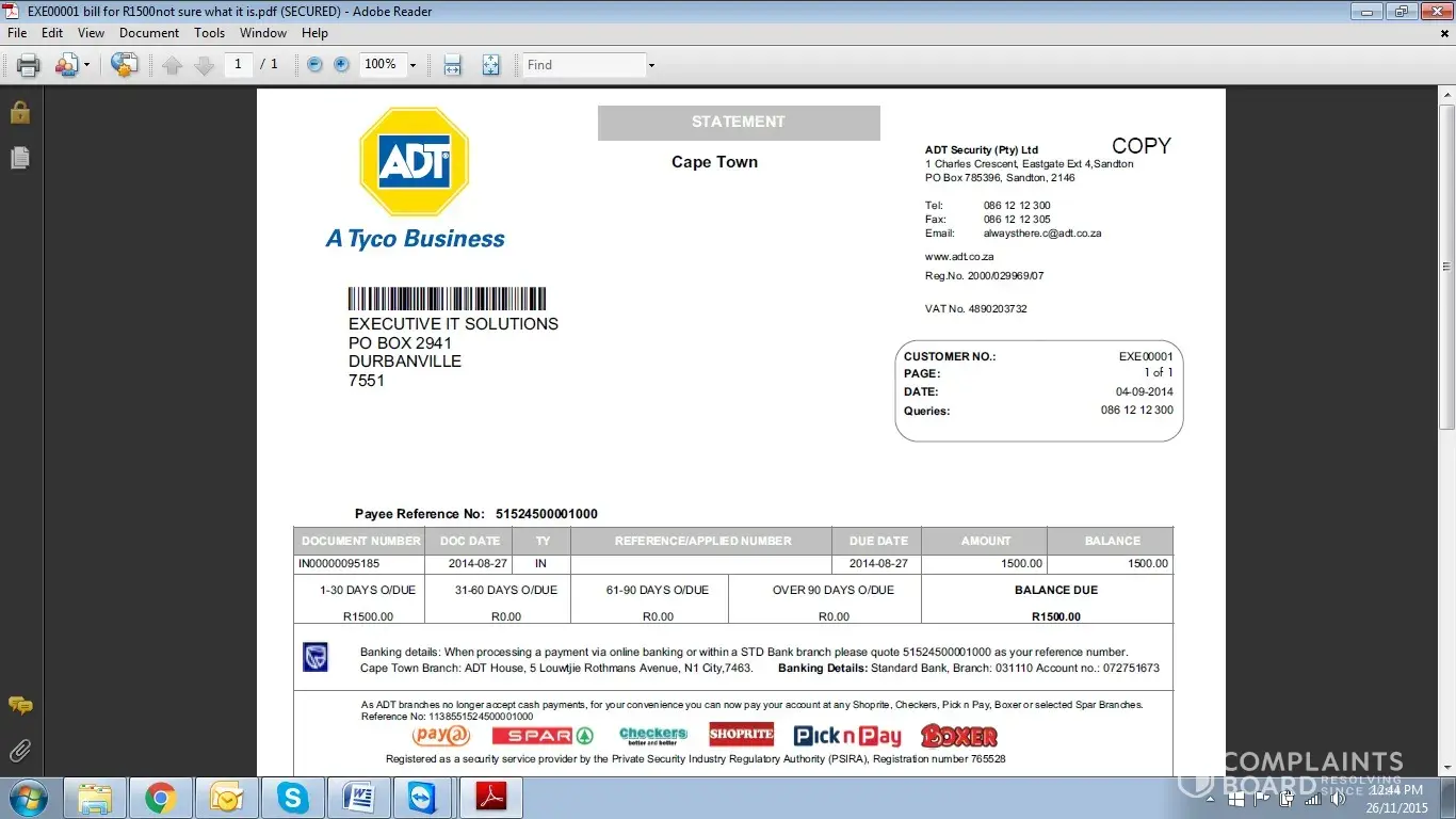 I have been awaiting adt security kzn to come through and attend to additional work that needed to be done our on premises. Colleen chetty from adt is the sales rep who assisted me with a quotation which I accepted. Last week I called colleen as it was brought to my attention that adt had debited out account for the work which was not done. Colleen advised me that on the 25th september 2015 a job card was created and that in fact the work was done. I advised that it was not done. She promised to get back to me but instead I received a call from beauty in the technical department asking if their technician could come through the next day. I advised that we work during the week and i'd get back to her. I received a call from colleen advising me that she would ensure that the debit order that was loaded on the system for the work that was not done would be cancelled so no debit order would go off our account. On friday 2nd october 2015 the debit order went off our account, I contacted adt an asked for the manager vaughan pillay to contact me regarding this matter. Vaughan called me and advised that once the funds reflect in their account they would do an immediate transfer into our account. Yesterday I contact zodwa nkomo in their accounts department and she advised me that the funds were in their account and that she was awaiting the go ahead from their finance department to release the funds in my account. Today I emailed both zodwa and vaughan and was advised by zodwa that the funds would only be paid into my account on friday 9th october 2015. She advised me that there are procedures that needed to be followed. I have all my correspondence with adt on email where they have messed me around regarding this payment. Now they don't reply my emails. They haven't sorted out the faults at hand nor have they done the additional work needed yet they make me wait for my own money. They have loaded a fraudulent job card/invoice on their system just to ensure that their sales rep get commission? I have been advised that procedures were not followed when the job card was loaded on the system yet I must wait for these so called procedures for my money that was taken unlawfully... Disgusted.