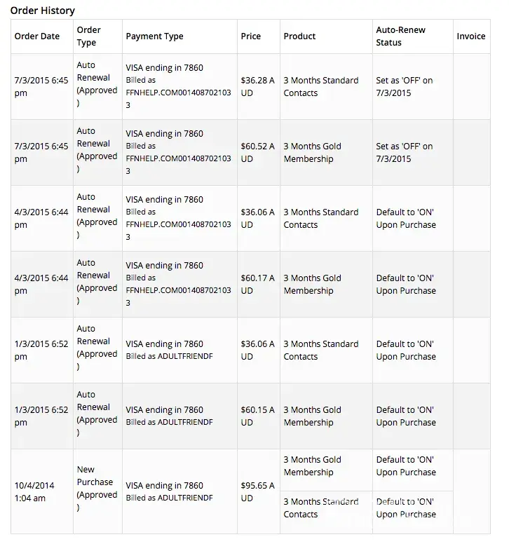 10/4/2014 1:04 am VISA ending in 7860 Billed as ADULTFRIENDF $95.65 AUD