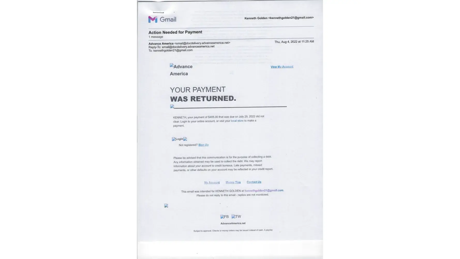 Advance America has sent me threatening emails saying that if I don't pay the money that my bank has disputed that they would report me to credit collections.