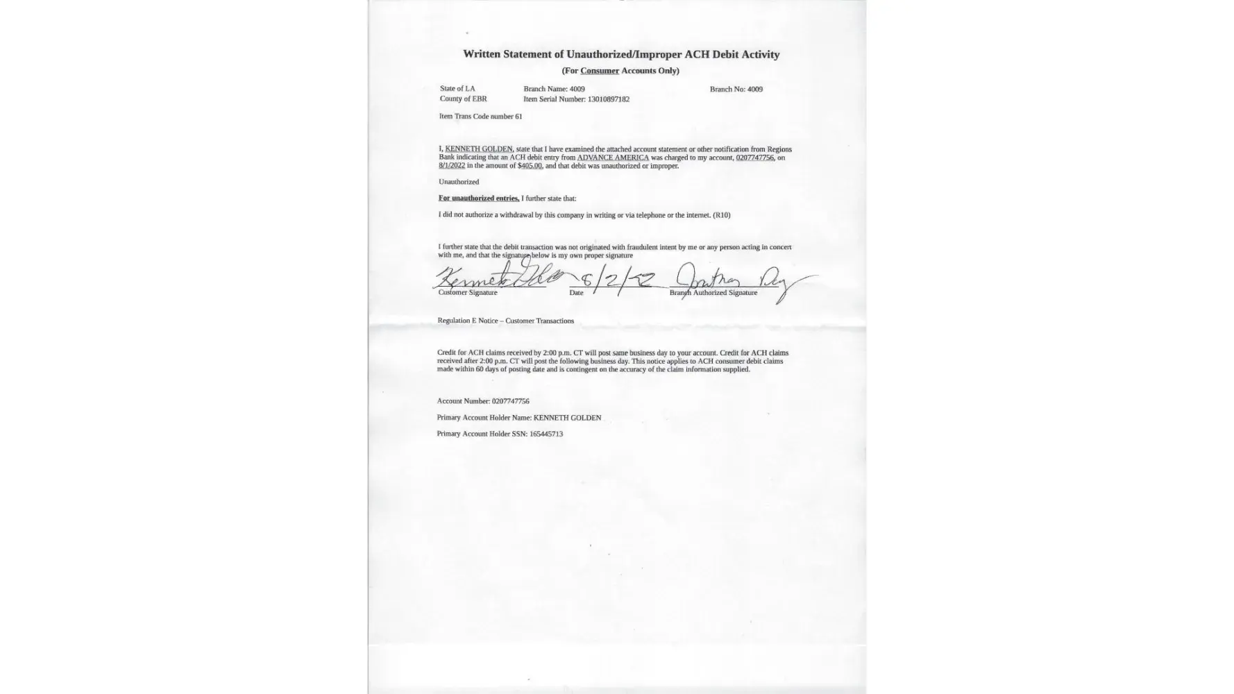 Since then I have filed a report with my bank (Regions) for a Fraud charge because someone within your system must have likely used my information to obtain a fraudulent loan.