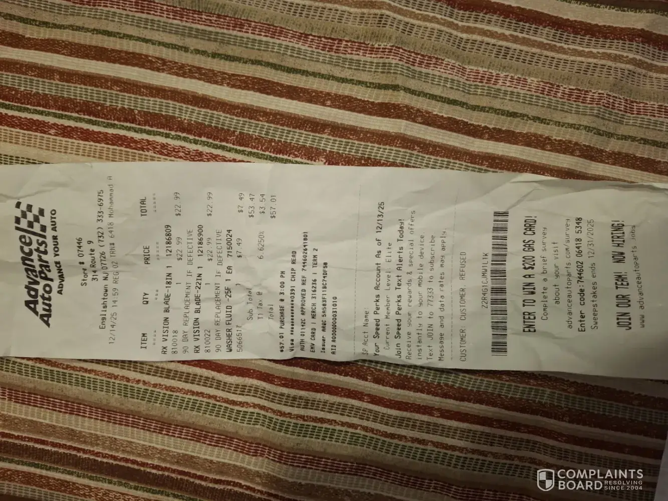 Sunday, December 14, 2025, I visited the Advance Auto at 314 Highway 9, Englishtown, New Jersey and I purchased windshield wiper fluid and windshield wiper blades. The store associate was extremely rude. I asked the associate how to install the blades and his response was, "everyone knows how to install blades." I was in the parking lot installing the...