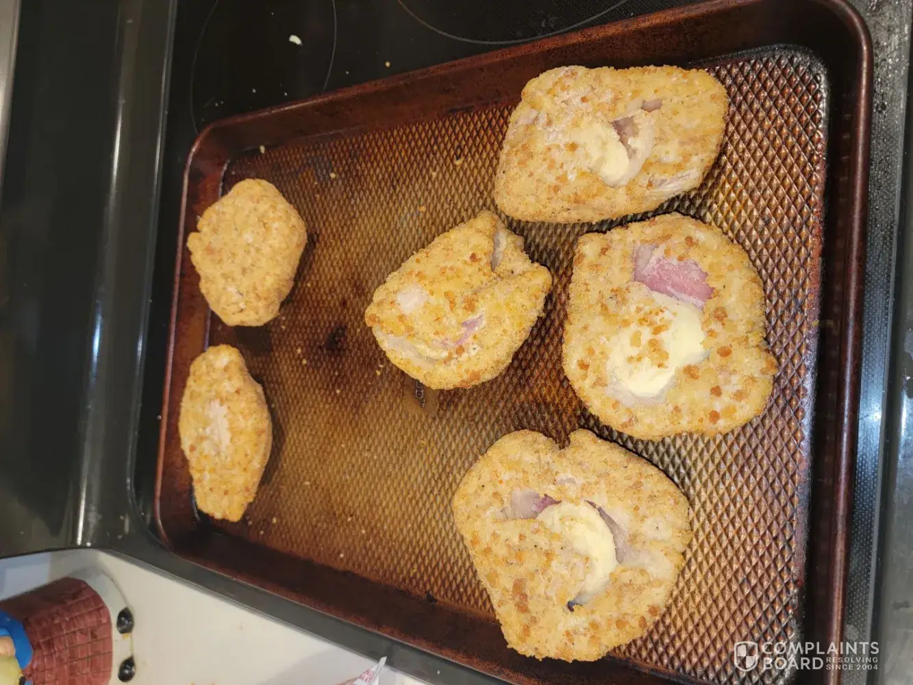 company advertises high quality product. the product packages say they are of utmost quality. in reality. this is about how the product is made...live chickens are hung upside down by broken legs on overhead conveyor..an automatic blade that is supposed to cut the chickens neck, cuts a gapping gash in the chickens chest instead...this is then followed by the chicken being scalded to death in a defeathering process..then on to mechanical separation where the collected meat is ground to mush. bleach is added to whiten and sterilize the mush and soybean products are added..it is then molded into shapes heated breaded and flash frozen...then it is packaged for distribution to stores...DOES THAT SOUND LIKE A QUALITY PRODUCT YOU WANT TO EAT?