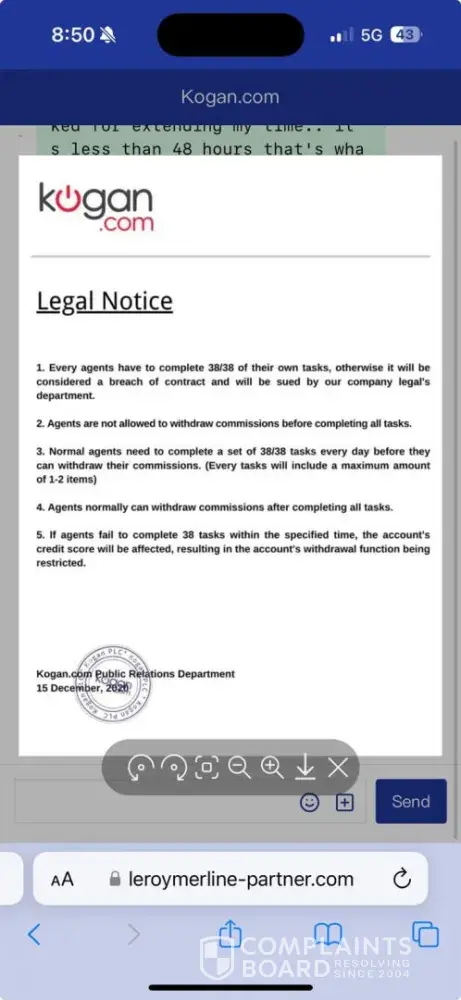 I started reviewing products as a person contacted me through your HR team. I started reviewing products and got negative balance into my account. In order to retrieve my deposit I paid more. Now they told my credit score is 90 and I can’t do withdrawals. I added some pics of the same with this email. Please do the needful and help me to withdraw money...