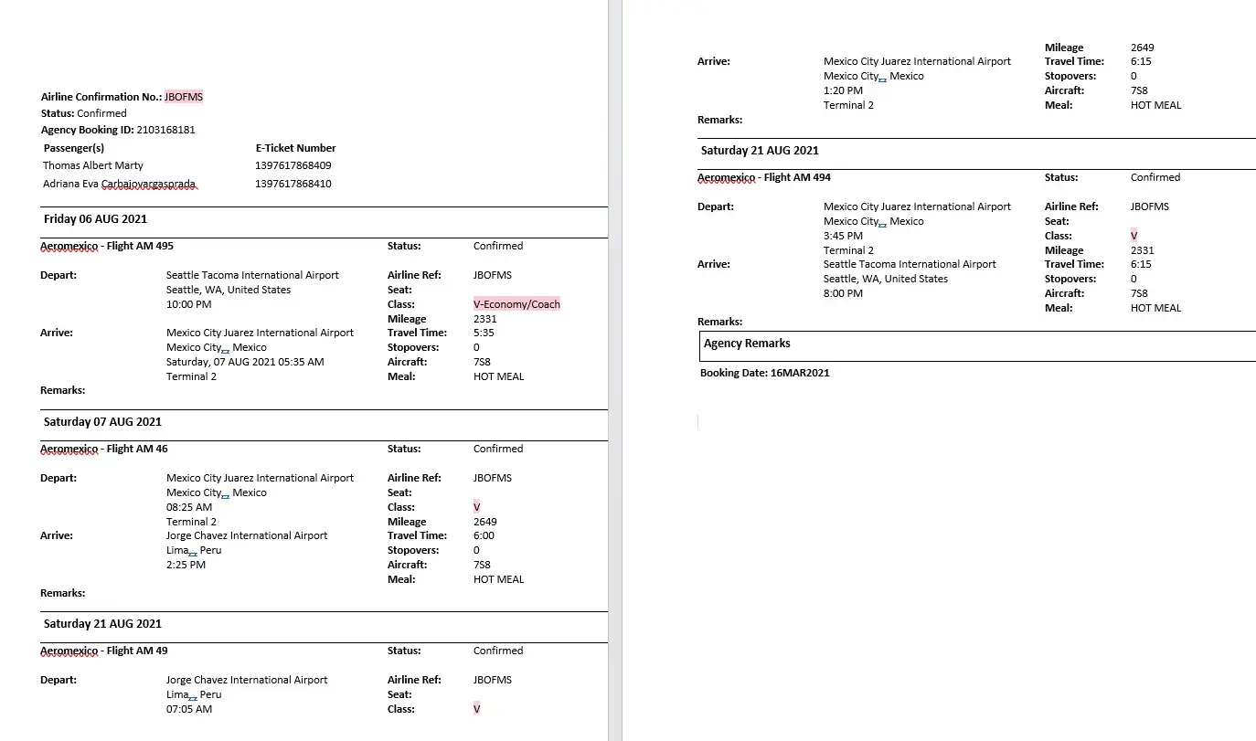 The flights remained the same, but the layover went from approximately 2 hours to more than 10 hours. When we complained, they said they would return the money. We have the original reservation information, the changes, and the email from AeroMexico that they would refund the money. They did tell me that it would take up to a year to get the refund, but that email came on 07/31/2021. As of July, 2022, I had not received the refund. And I began contacting them. They agree that they need to refund the money, but they do not take any action or respond to my requests to contact me and update me.