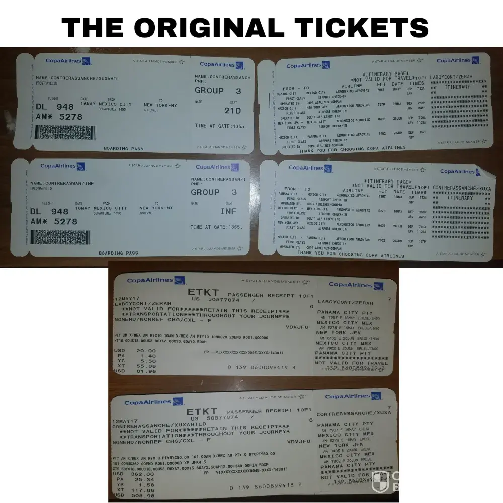 Three tickets IAH-MEX for the 14th of July where purchased online through MyID Travel (12/Jul/2017) 5:29.44 am.