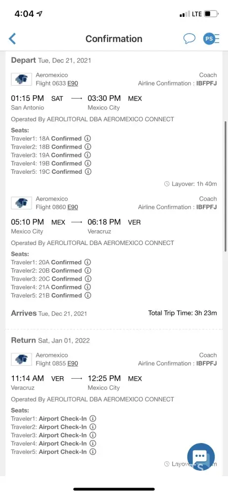 At this point, we are very disappointed with the customer service and the system of Aeromexico for constantly failing what other airlines can do in 3 minutes on the website.