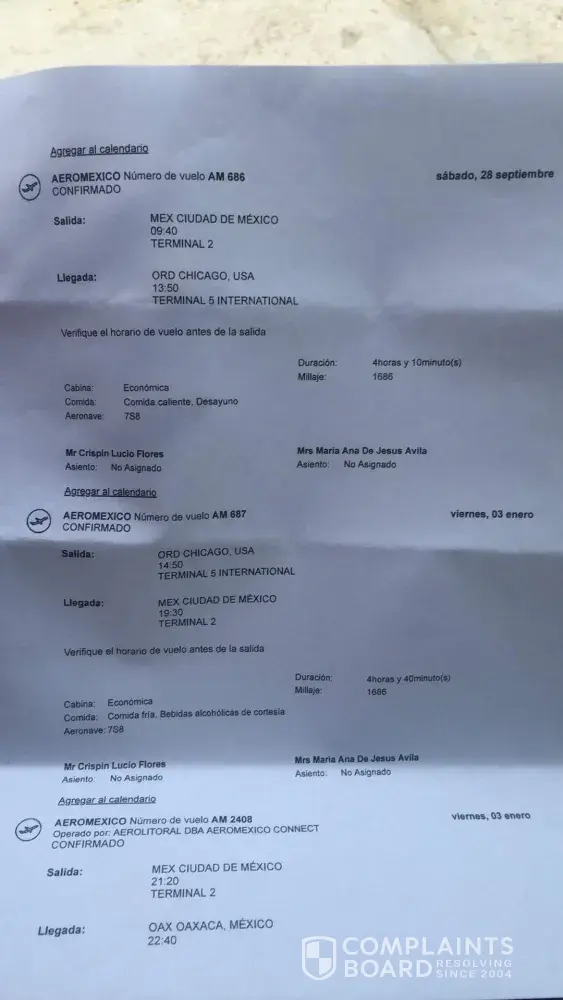 Confirmation#maixdd confirmatior 2 #szlutb por fabor regresenme lo de un boleto mi salida de chicago es el 25 de octubre ala 1:40am compre uno boleto no dos mi nombre es saul alfonso rios y biajo de chicago a guadalajara one way only yo solo viajo nadie mas viaja con migo no se por que me cobraron dos boletos dejenme un boleto el que sea de los dos