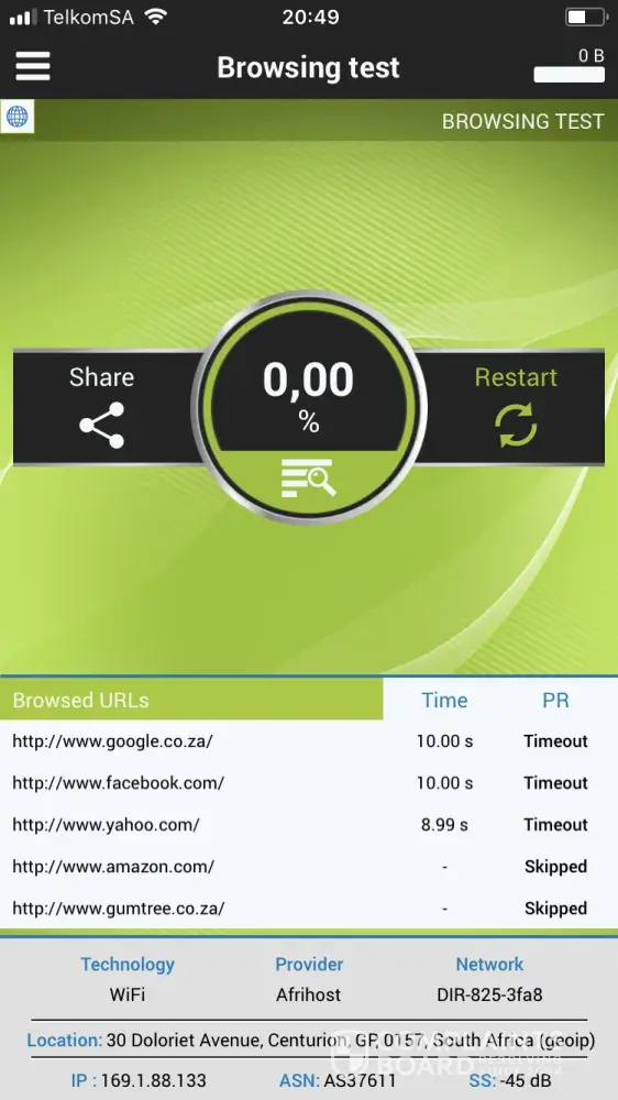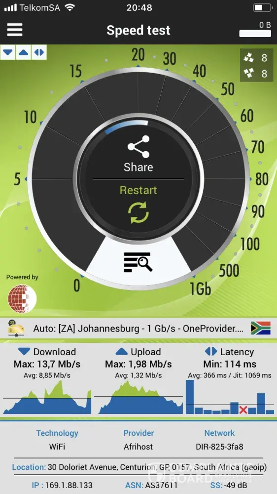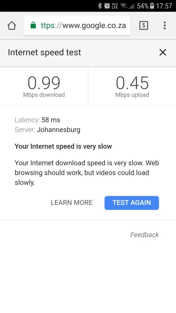Afrihost 20 meg line speed issue