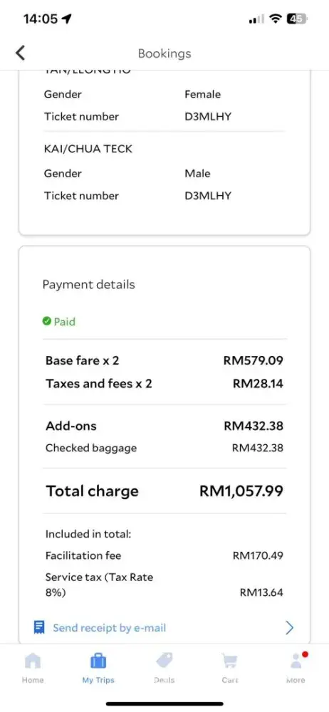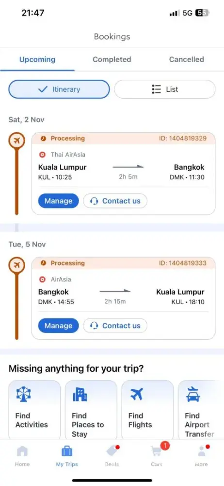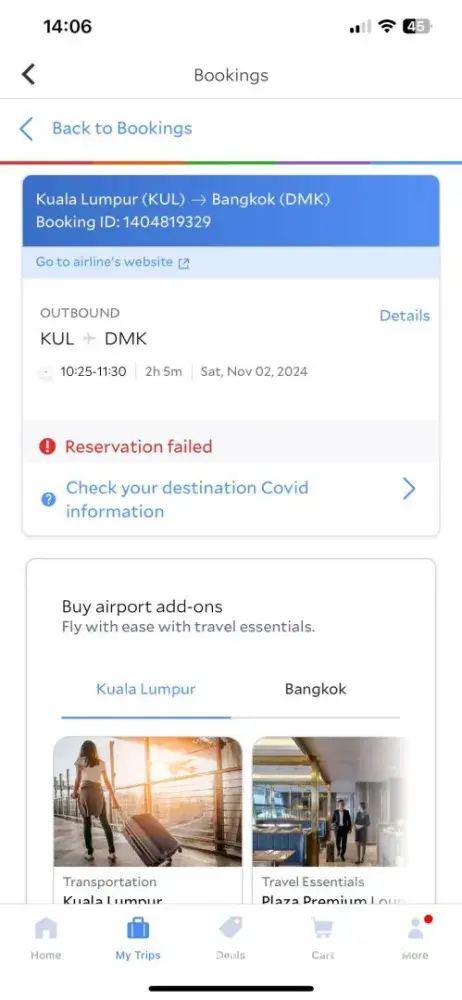 I'm not sure what's system error or what, 08th Oct 2024 i only received one booking confirmation which stated that successful booked ID: [protected] (DMK - KUL) for booking ID: 1404819329 reservation failed! and i had to get placed single trip booking for KUL - DMK with one single trip prices cost (RM1057.99) SERIOUSLY!