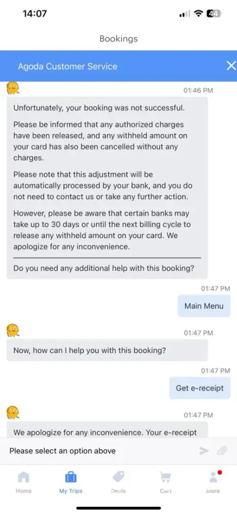 I insisted that Agoda resolve the issue by determining why my cancellation request from October had not been processed. They claimed they had no record of my cancellation. Since then, I have been urging Agoda to investigate and escalate the matter, as I should not be held financially responsible for their oversight. However, they have been uncooperative and suggested I resolve the issue with my bank. They have even threatened to take action over a negative review I posted unless I agreed to remove it. When confronted again about their failure to cancel my booking, they conveniently had no record of the conversation.