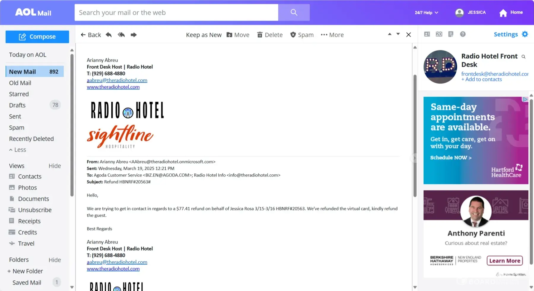 Chairman American Express, Request for Refund from Hotel Booking Issue