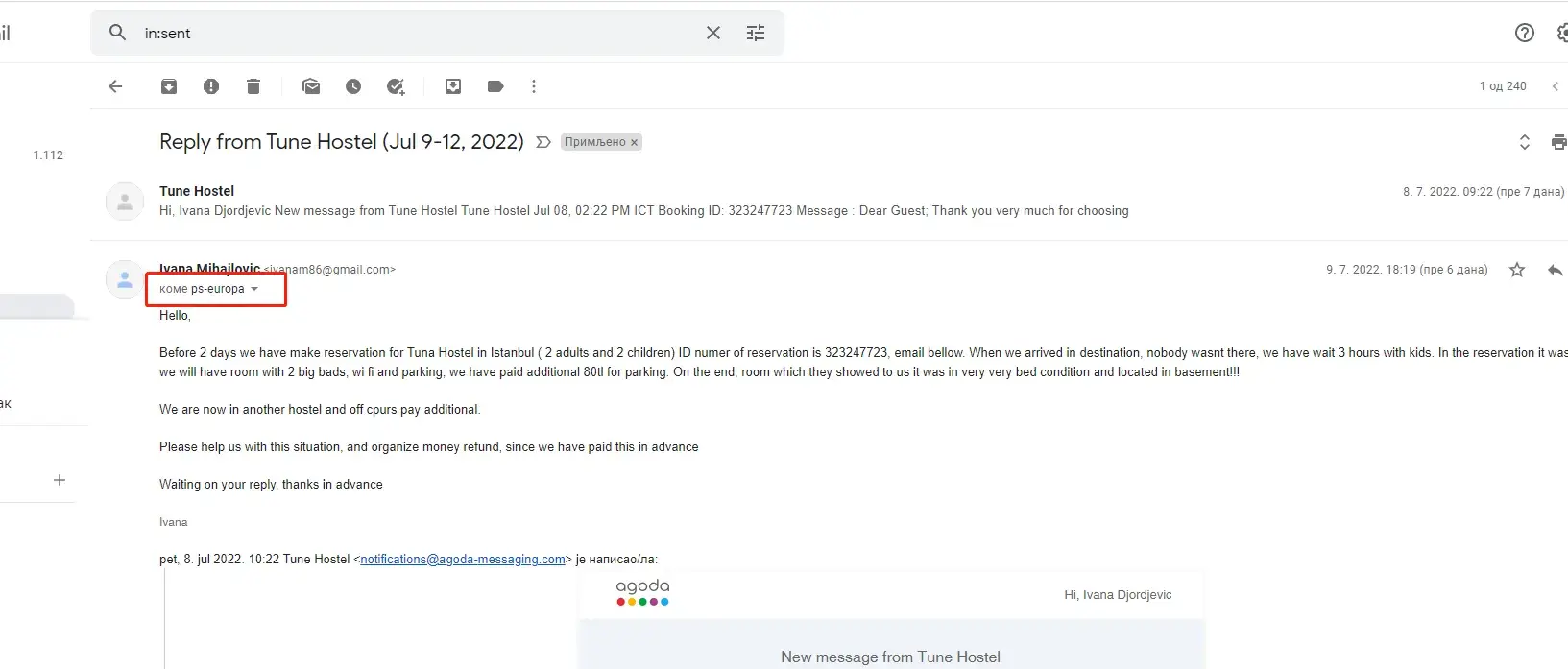 We have make reservation for Tuna Hostel in Istanbul ( 2 adults and 2 children) ID number of reservation is [protected]. When we arrived in destination, nobody wasn't there, we have wait 3 hours with kids on the street. In the reservation it was that we will have room with 2 big beds, wi fi and parking, we have paid additional 300tl for parking due waiting. On the end, room which they showed to us it was in very very bed condition and located in basement, no windows, dirty bedsheets, no parking, no wi fi, full with moisture!