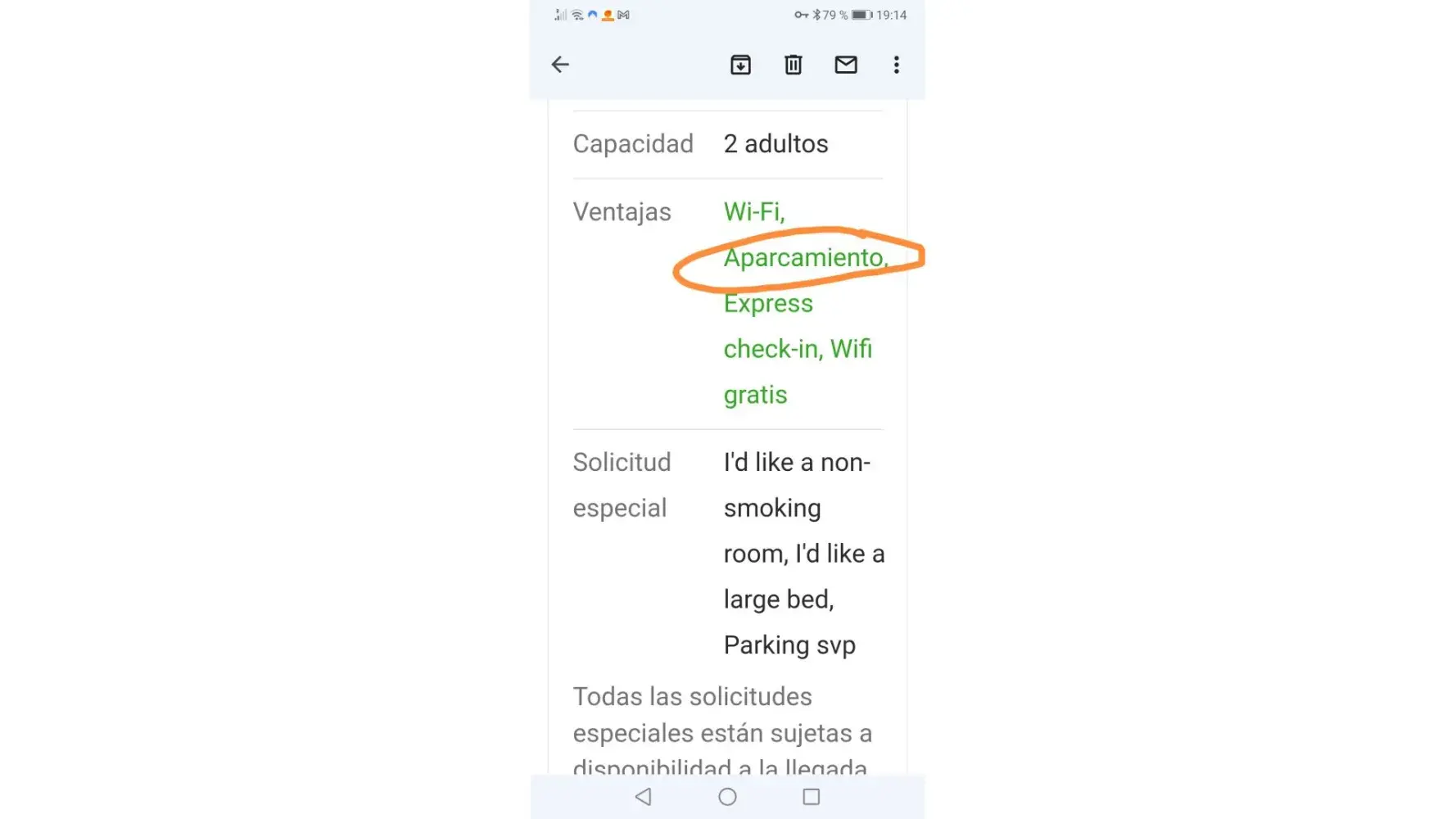 Desired outcome: Refund me 21€, because there was no Parking reserved and the offer included Parking for the 3 nights requested (as can be seen in the reservation's screenshot I am posting)