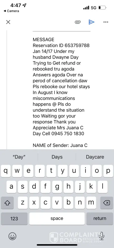 Dwayne Day. Agoda booking # [protected]