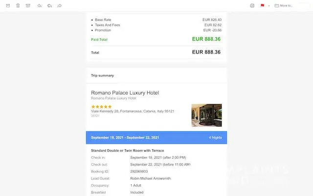 I made a booking for 2 rooms (double occupancy) at the Romano Palace Hotel (18-22 Sep) at 6.17pm at a cost of €888.36. I was allowed a full refund if cancelled within 24 hours and I cancelled the booking at 6.22pm, 5 minutes after the original booking. I cancelled as despite booking for double occupancy the confirmation e-mail indicated single occupancy. I received an immediate confirmation of cancellation stating I'd receive a full refund of €454.51 which I did, a shortfall of €433.85. The Agoda e-mail indicated cancellation of only one room but online the full 2 room booking was cancelled. This is simply theft. I will not be using Agoda again as they simply are not trustworthy with no customer service available to resolve such disputes. The worst service ever!