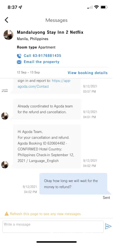 Agoda Booking ref. Number: [protected] request for refund due to hotel management error