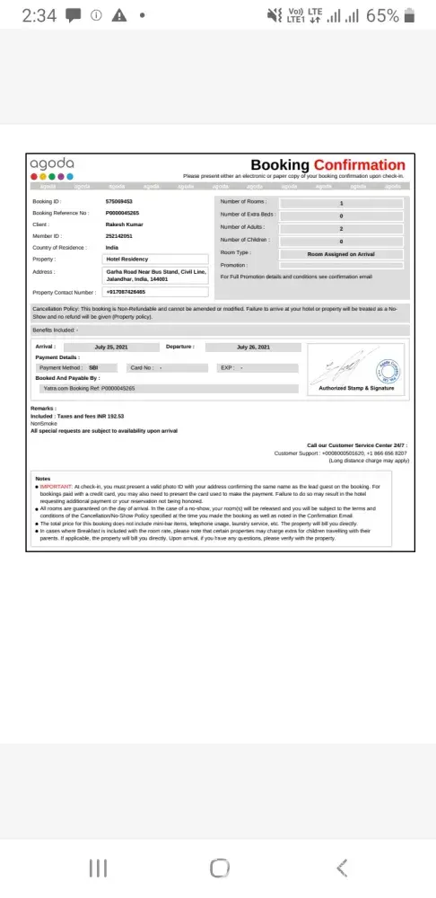 Agoda nor the confirmation from them if my hotel is booked they didn't receive my call and I kept trying to call them again and again. I rate agoda 0 out of 10 worst experience with worst customer service. Never going to book here again! They even provided me the wrong booking number when I have entered in the website they said no booking found but then I called the property and they informed me I got a reservation so I wanted to cancel it but they said only agoda can do it! I seriously don't understand how are they treating customers here. No customer satisfaction!