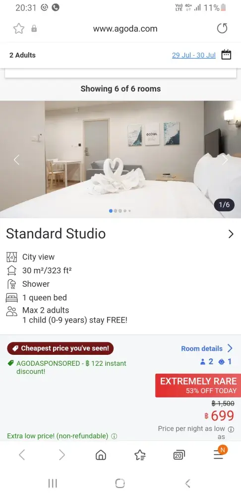 Ive attached screen shot from my girlfriends mobile and my mobile phone with my booking and room pictures from agoda.