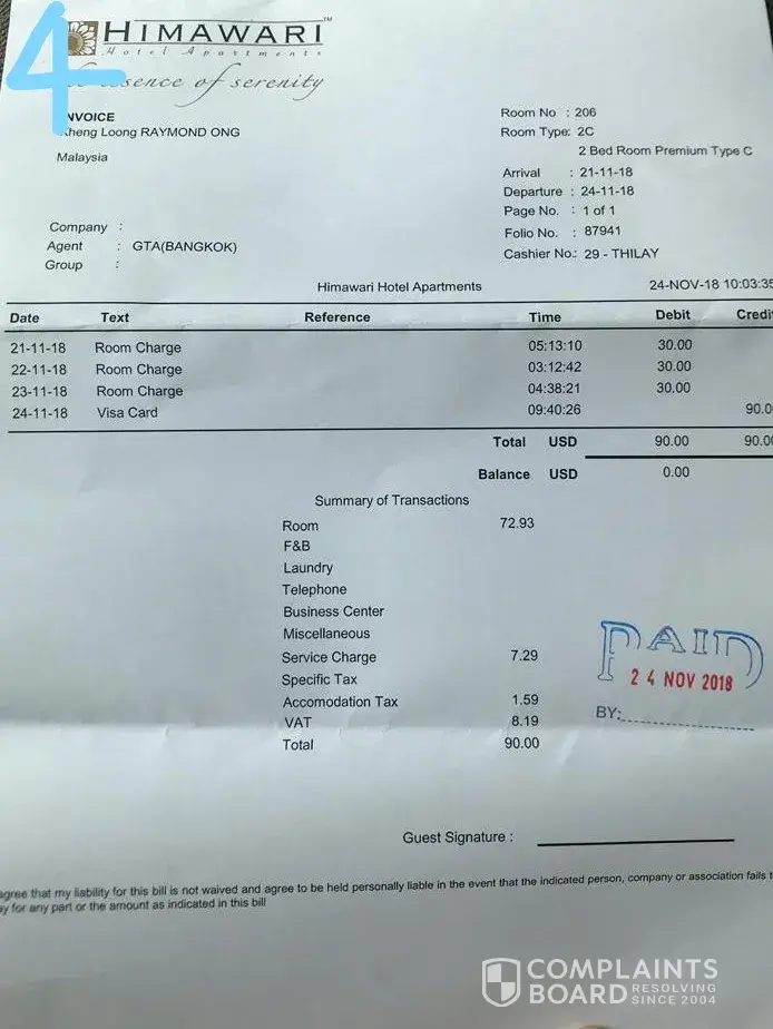 The management said that " I ALSO DON'T KNOW WHY AGODA ADVERTISE LIKE THIS ", this cost us 90 dollars for the extra bed. Below is the invoice (picture no. 4).