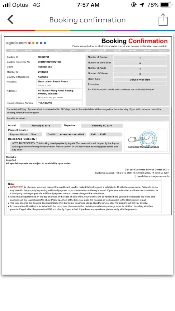 In July I May I booked a hotel in Phuket through Agoda for July holiday and paid with my credit card.