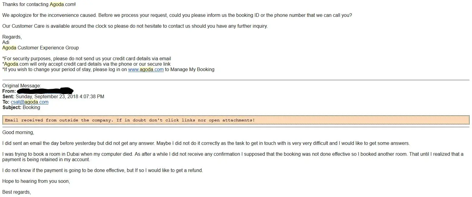 4. Refund sought but hotel said to claim from Agoda since booking done via Agoda