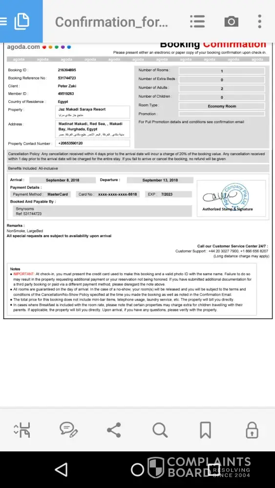 we were reserved a room in jaz Makadi saraya ressort hurghada egypt through Agoda website and today is our check in and we recived a confirmation mail with our fully payment to the room and we already went to the Hotel and they are telling us no reservation or money transfer done from agoda and while contacting agoda they apologized as the mistake from them but no solution happened in 12 hours and we didn't have our money back or even have the room worest website ever