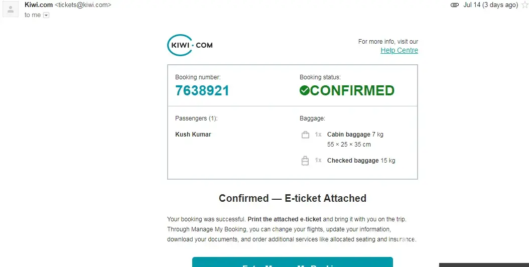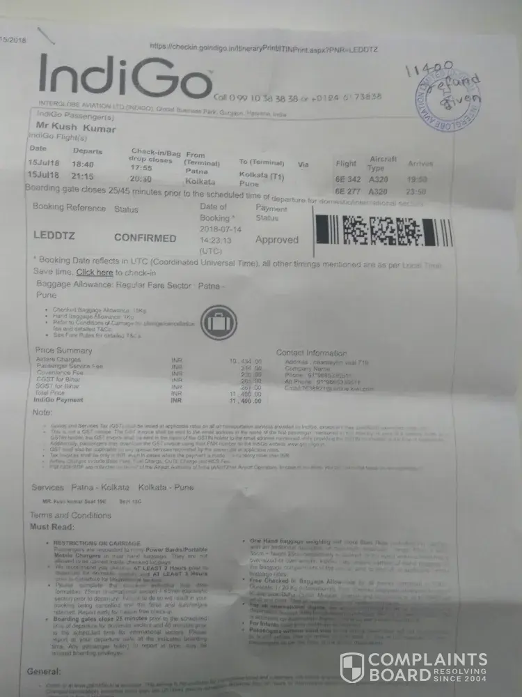 Sending the booked ticked confirmation mail along with the screenshot of the amount which i had to pay at the airport.