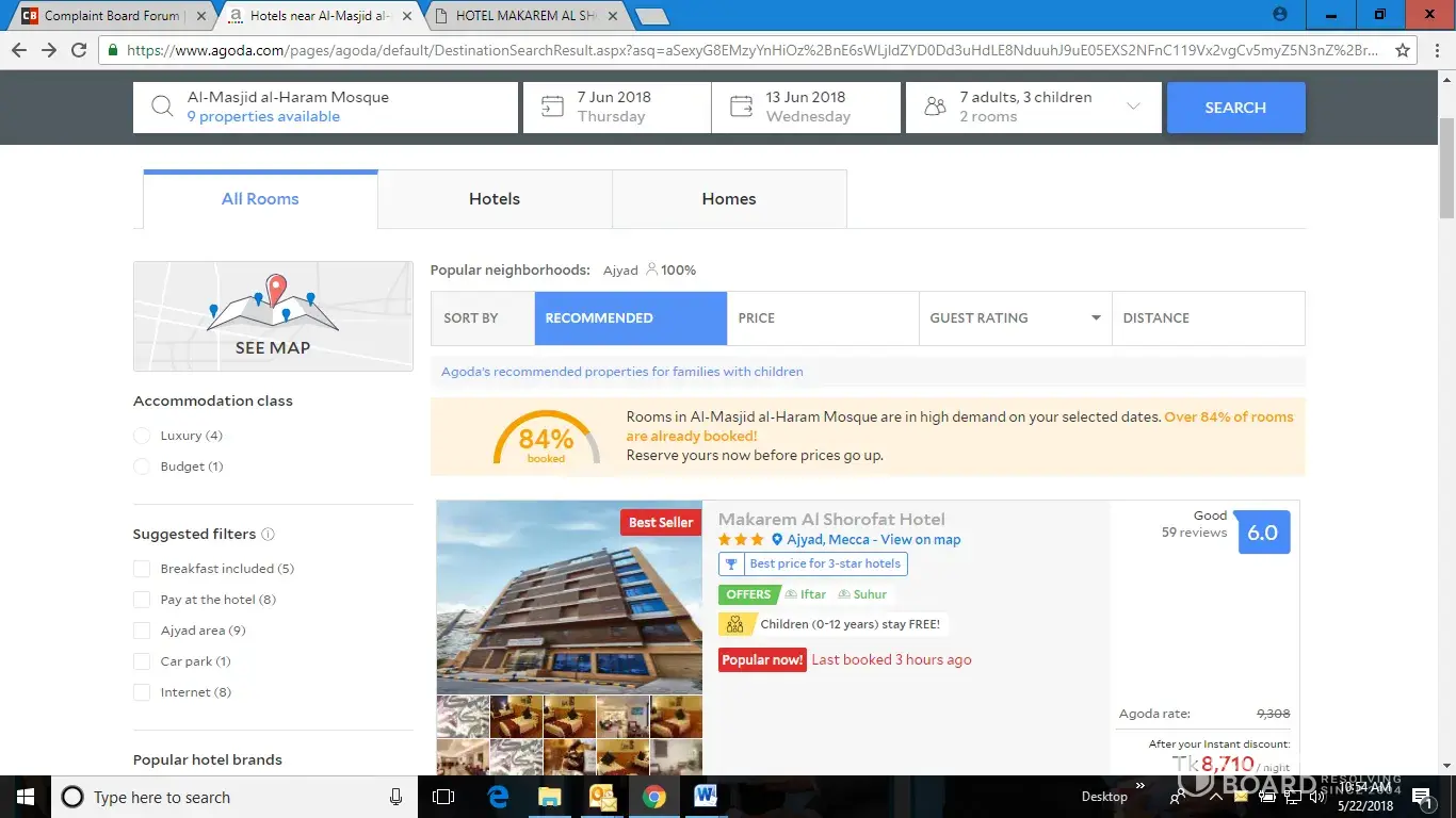 Before confirming the booking in AGODA, I have searched other sites where better rated hotel were available in much cheaper cost but those are located minimum 2 k.m. away from Masjid Al Haram.