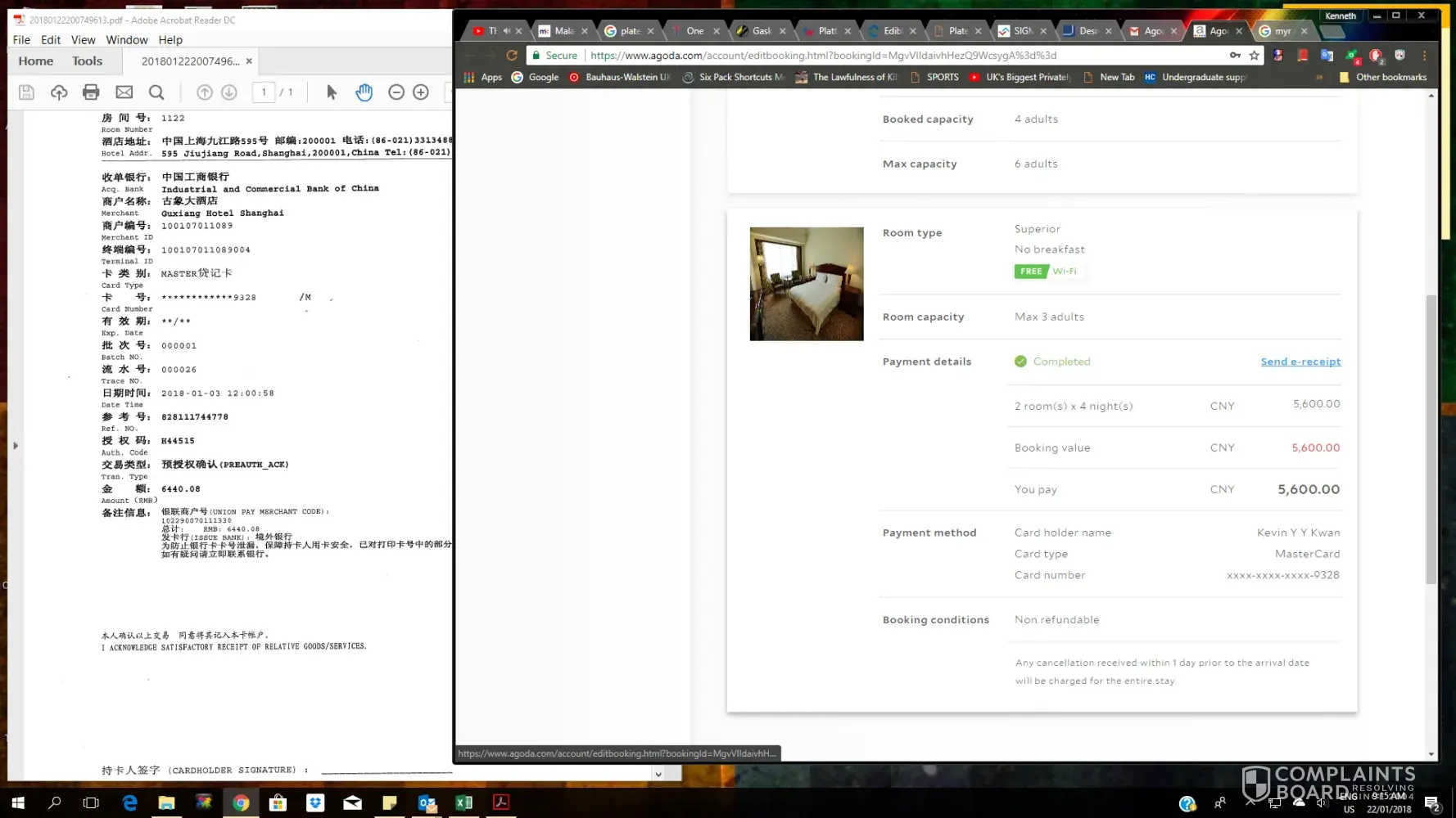I had previously made a booking for two rooms at Guxiang Hotel Shanghai. Our booking ID is [protected]. My family and I checked in on the 30th December 2017 for a 4 night stay. The initial price quoted to me by agoda was CNY5600, however upon payment at the property, I was charged CNY6440.08 (please refer to photos attached). I would like to know why there was such a drastic jump in pricing between the price promised by agoda and the final charged price. Hoping to hear from them regarding the matter and a resolution for the matter.
