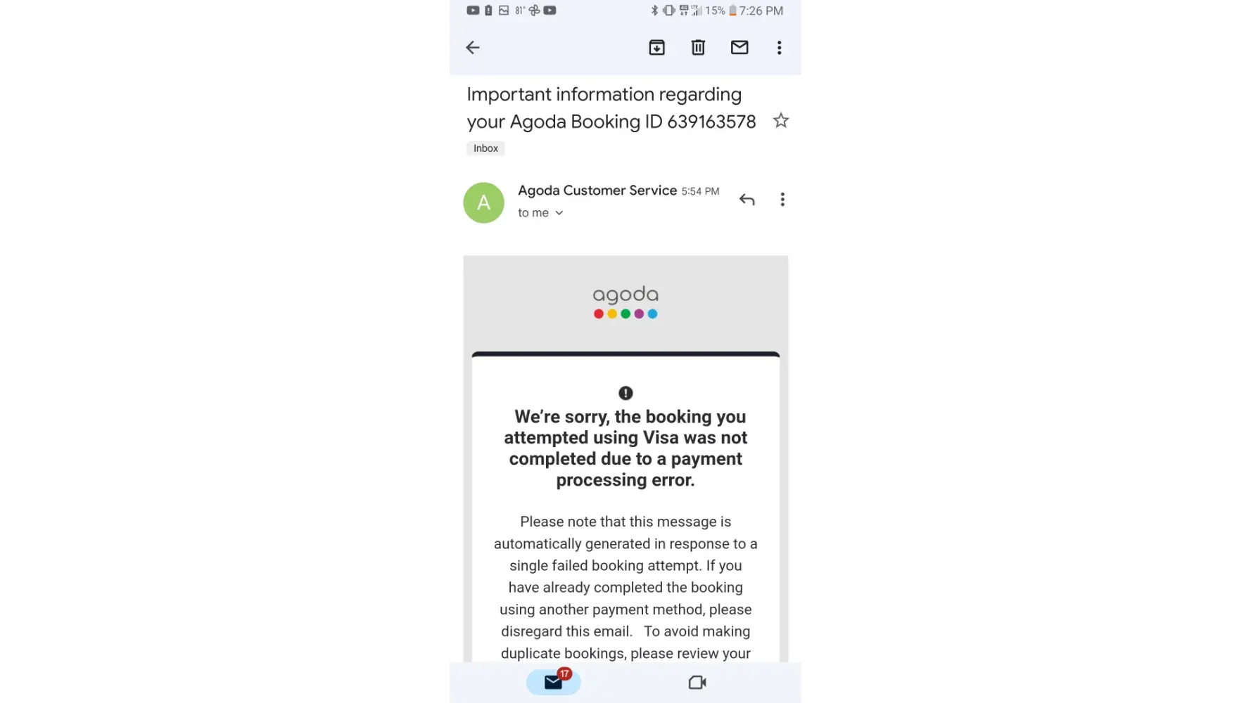 I am AGODA regular customer and i feel very disappointed with such service provided.
