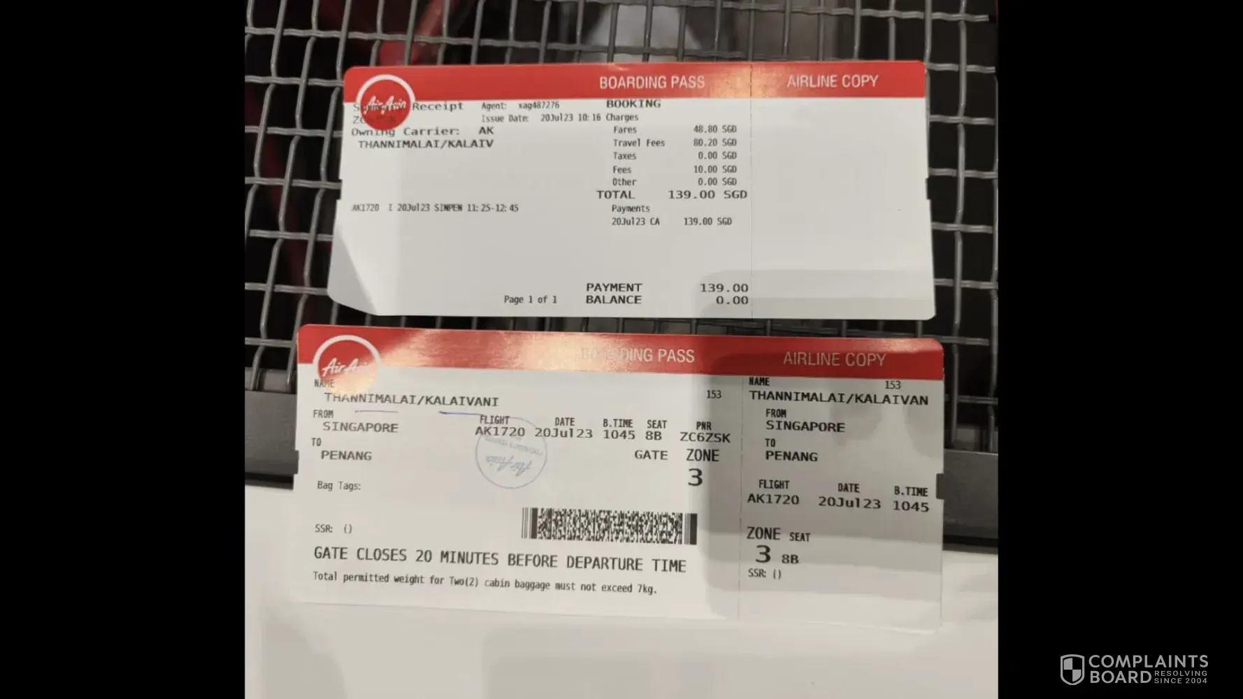 I booked flight for my wife Singapore to Penang on 20th July 2023. (AirAsia AK 1720 Singapore Changi Airport - Penang International Airport