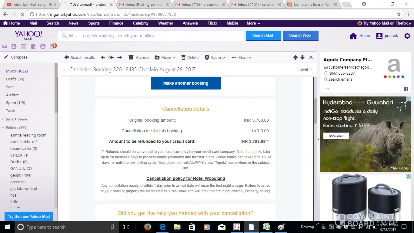 Agoda sudden very expensive hotel accommodation cost/price (booking no.[protected])