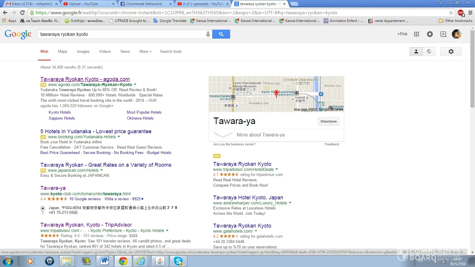 I book hotel without double check the link from GOOGLE “Tawaraya Roykan Kyoto-agoda.com” And I end up with wrong hotel and have to contact them during my trip in JAPAN. No one call back. I have to book new hotel in Kyoto. They are in Hotel business they know that Tawaraya is most famouse Roykan in Kyoto they should not put a link to KYOTO. None of other booking do it.